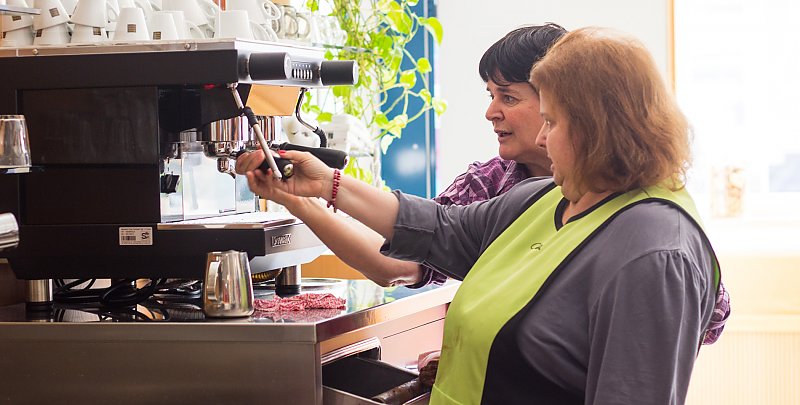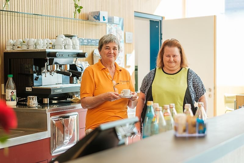 Unser Cafè lädt zum gemütlichen Beisammensein ein. Im Foyer, das alle drei Gebäude, Jesuheim, Vinzenzhaus und Josefshaus, miteinander verbindet – befindet sich unser hausinternes Cafè. Als zentraler Ort der Begegnung mit ausreichend Sitzmöglichkeiten und netten Tischen im Innenhof.